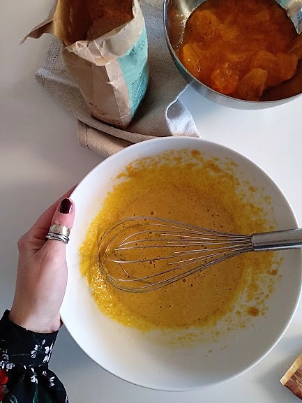 Aggiungiamo la polpa dei cachi che avremo prima spelato e sminuzzato.